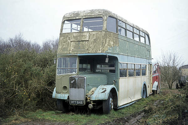 Pictured in 1974 at Colin Shears' West of England Transport Collection premises at Winkleigh, liberally covered with that green Winkleigh 'growth'. It does not seem to appear nowadays in any lists of preserved vehicles, though two similar NTT-registered ones are believed to still exist. In the background can just be seen an Austin K4/CXD with Kenex bodywork - I do hope that one survived.