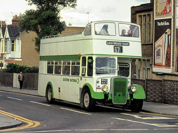 Eastern National KSW open-topper 2382, WNO483, waits at the end of Lifstan Way ready to turn onto the sea front with a 67 for Kent Elms Corner.