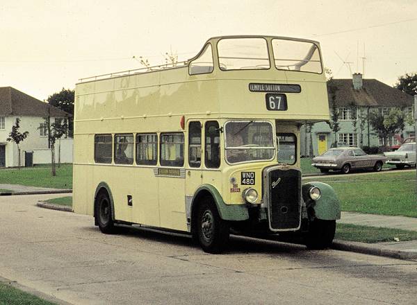 Eastern National 2384, WNO480, well away from the sea front, stands at the western terminus of the 67, in the middle of a housing estate at Kent Elms Corner.