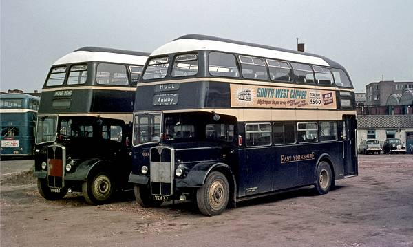 East Yorkshire 645 and 637, VKH45 and VKH37, both AEC Regent Vs with Willowbrook H30/26RD "Beverley Bar" body of 1956.