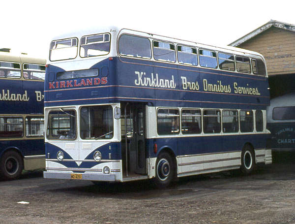 Kirkland Bros Omnibus Services 1, MO4281, seen at the Ballina Depot was a Leyland PDR1/1 Atlantean with a Weymann H45/32F body which had been new as Standerwick 31, VFR373, in 1961 when it seated CH34/16FT. It was withdrawn in 1972, passing to North (dealer), Sherburn-in-Elmet in March 1972, then to Swires, Sagar and Fox, Tarleton (as a Non-P.S.V.) in April 1972 after which it passed to Hill (dealer), Wolongong, N.S.W. in March 1973 when it was reseated to H45/32F, passing to Kirkland, Lismore, N.S.W. In February 1974.
