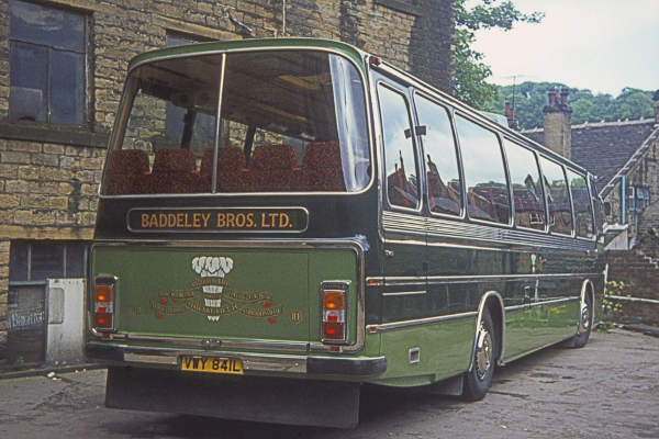 A rear view of Baddeley Bros., Holmfirth 114, VWY841L, a Ford R226 with Duple Dominant C53F body, new in 1973.