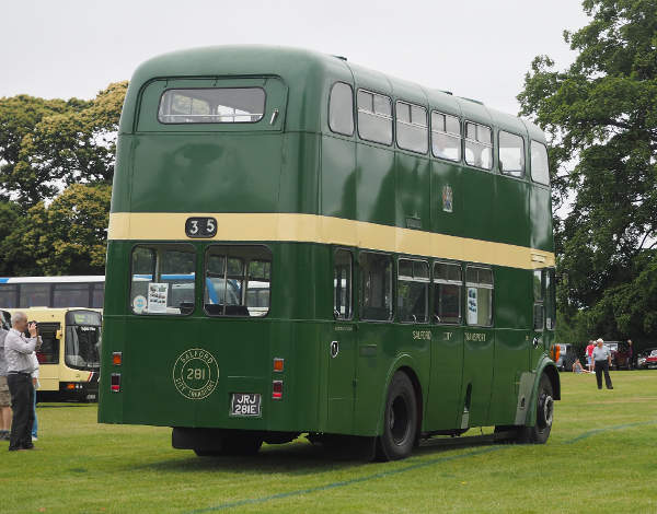 Rear view of preserved ex-Salford City Transport 281, JRJ281E, a Leyland Titan PD2/40 with front entrance MCW body, new in 1967.