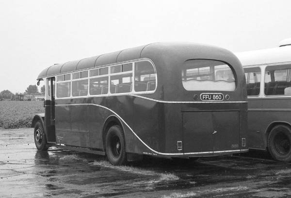 A rear view of preserved former Enterprise of Scunthorpe 60, FFU860, an AEC Regal III 9621E with Willowbrook B35F body, new in 1950.