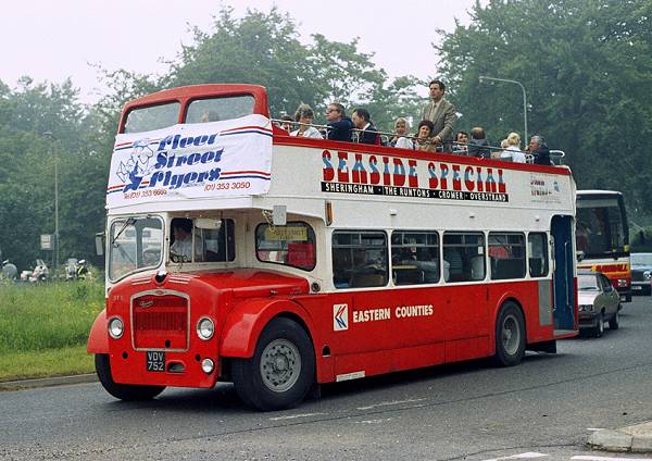 Ex-Western National Bristol LDL open topper VDV752 as Eastern Counties OT1 on its way to the Derby.