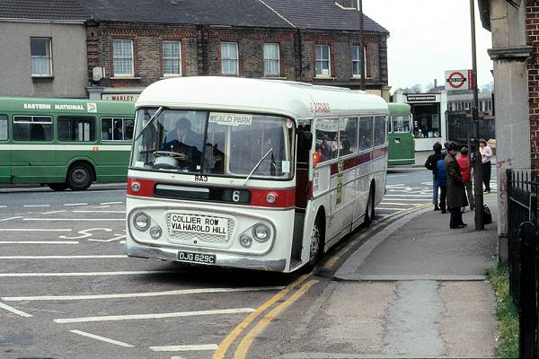Ex-East Kent AEC Reliance/Park Royal DJG629C as Bordabus BA3 on arrival at Brentwood Station.
