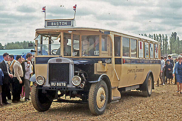 Leyland Lion RU8678 appears to be in use as a promotional vehicle at a bus rally at Stratford-on-Avon in, probably, 1970. It was a Leyland PLSC3 with Leyland B35F body, new to Hants & Dorset in 1929 and withdrawn in 1938.