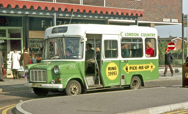 London Country Ford Transit FT2, VPF122M, at Harlow Bus Station on the Pick-me-up service.
