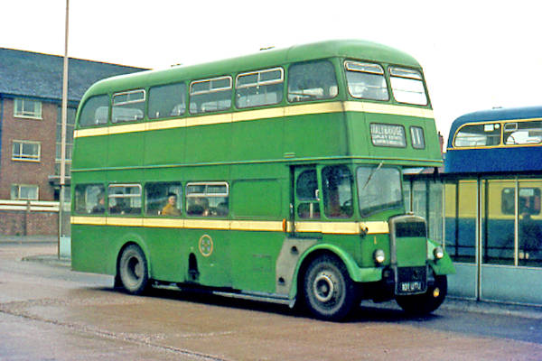 SHMD PD2 1, 101UTU, a Northern Counties bodied Leyland PD2/37 at Ashton Bus Station. This is after the formation of the PTE, although the bus is still in SHMD livery and does not even carry its PTE fleet number.