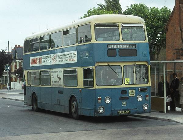 Southend Fleetline 350, WJN350J, in Southend Central Bus Station on a 7a to Lower Hockley, Dome in mid 1984. This is one of the withdrawn vehicles reinstated during the 1984 rail strike.