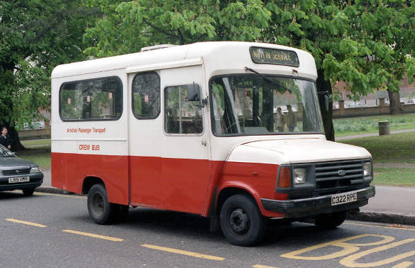 Armchair Passenger Transport Ford C322PRE in use as crew transport at Ealing Broadway. It had originated with Alder Valley.