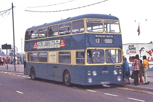 Southend Corporation 363, WJN363J, Daimler Fleetline / NCME. Click here for more details from the Southend fleet list pages.Photo taken by Eric Thompson, July 1972, Seafront, Southend See the Site Map for further details about copyright.