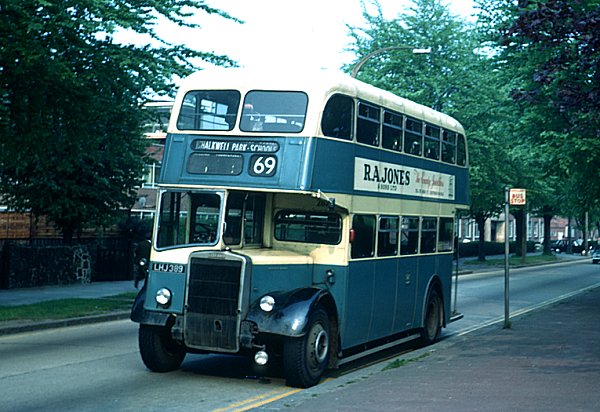 Southend PD2 287, LHJ389. Sometime between 1965 and 1971, 287 had lost its opening front windows.