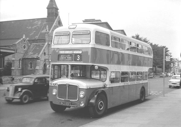 Southend Bridgemaster 320, WHJ431, had only been in service about two months when this picture was taken, waiting at Victoria Circus before turning round for the trip to Benfleet.