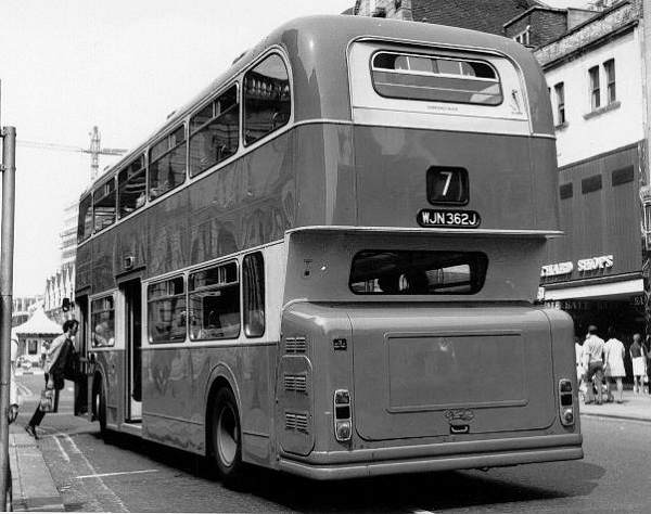 A rear view of a very new Southend Fleetline 362, WJN362J.
