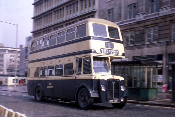 West Midlands PTE 3193, MOF193, a Daimler CVG6 built in 1954 with Crossley H30/25R bodywork. This had been new to Birmingham Corporation.