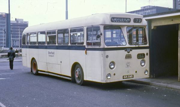 Sheffield Transport 12, 616BWB, a Leyland Leopard L1 built in1962 with Park Royal B45F bodywork.