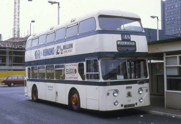 Sheffield Transport 137, LWB137D, a Leyland Atlantean PDR1/2 built in 1966 with Park Royal H44/33F bodywork.