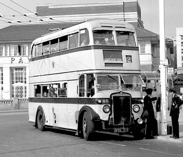 Bournemouth 25, FEL208, was a Leyland TD5, new in 1939, with a Weymann FH27/21D body.