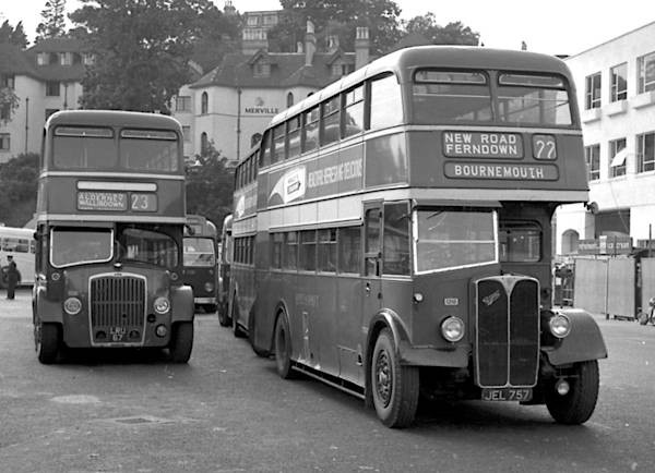 Hants & Dorset 1218, JEL757, was the last of six A.E.C. 6811A Regent IIIs with Northern Counties L27/26R bodies new in 1949 which had been diverted from Western S.M.T. and is seen in Bournemouth.