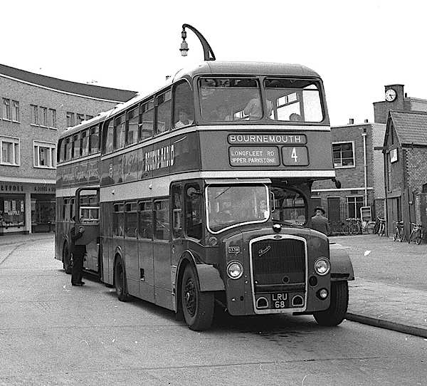 Seen in Poole is Hants & Dorset 1338, LRU68, which was an early Bristol LD6B (chassis 100.009), following on from the six prototypes (100.001-006), and which was new in February 1954, with an Eastern Coachworks H33/25R body.
