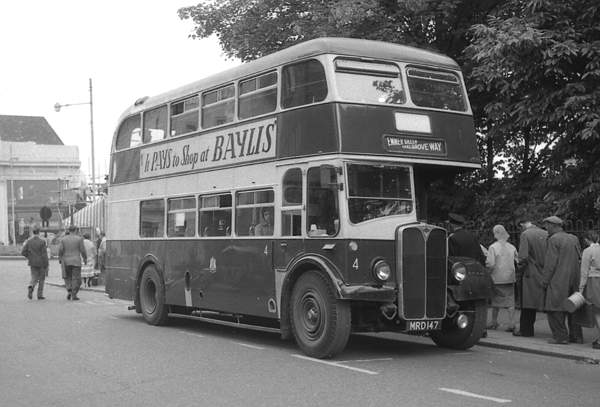 Reading 4, MRD147, an AEC Regent III with Park Royal L57RD body new in 1956, is now preserved.