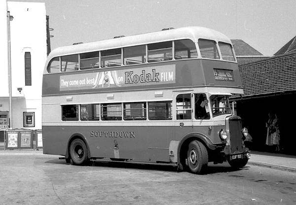 Fifty-one Leyland TD5s were delivered to Southdown, Brighton in 1938 with bodies by Park Royal (31) and Beadle (20). The one seen here 193, EUF193, was one of those with Beadle L26/26R bodies and is seen after being rebodied in 1950 with an East Lancs H28/26R body.