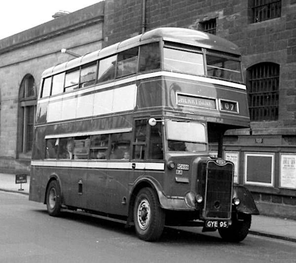 Alexander, Falkirk RO699, GYE95, was a Guy Arab II (5LW) with a Northern Coachbuilders H30/26R body (sub-contracted to them by Park Royal), which had been new in July 1945 to the London Passenger Transport Board as G151.