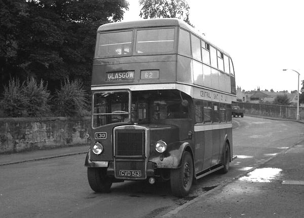 Central S.M.T. L313, CVD513, was a Leyland PD1A new in 1949 with an Alexander L27/26R body and was withdrawn in 1964 and sold for scrap.