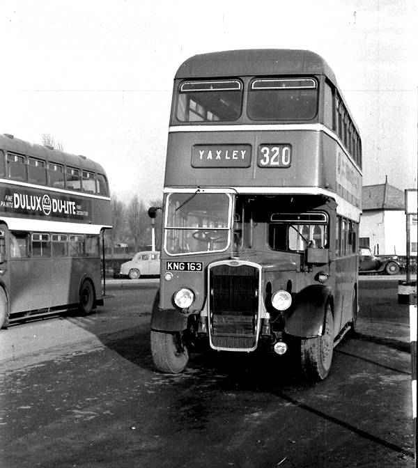 Eastern Counties LKH163, KNG163, was a Bristol K5G which had an Eastern Coachworks H30/26R body and was new in 1950. It is seen here at Bishop's Road Bus Station, Peterborough.