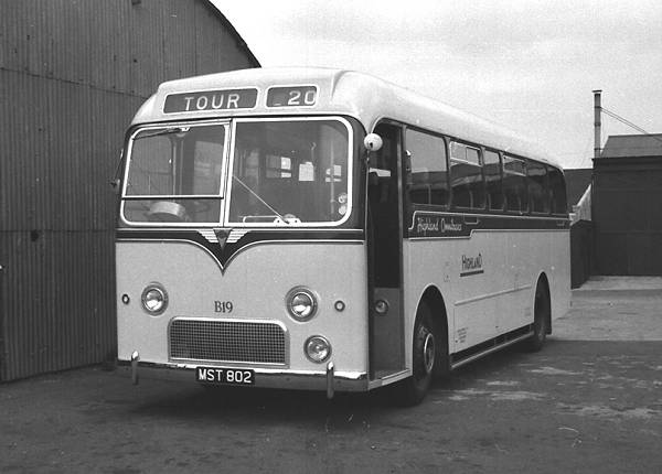 MST802, seen at Needlefields Central Works, Inverness, was an Alexander C41F bodied AEC 2MU3RV Reliance new to Highland in January 1959 as B19.