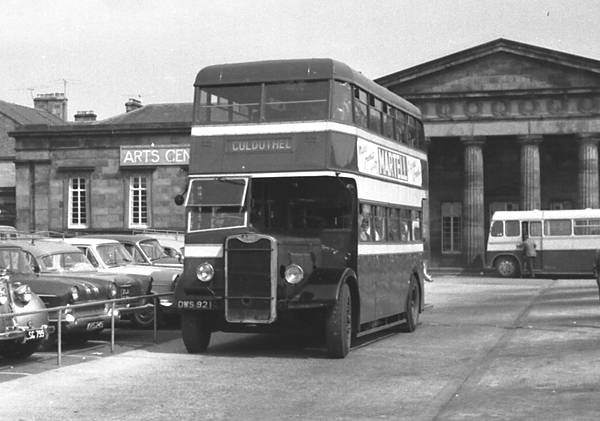 Highland E4, DWS921, seen in Farraline Park Bus Station, Inverness was a Guy Arab II with Roe L27/26R body new in July 1944 to Scottish Omnibuses. It passed to Highland in 1957. It was later fitted with platform doors by Scottish Omnibuses (1959/60).