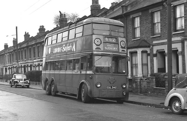 London Transport Class C3 trolleybus 342, CUL342, at Letchford Gardens, Harlesden