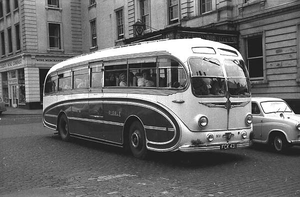 FCK431, Ribble 931, was one of the forty Leyland PSU1/15 Royal Tigers new to Ribble in 1953. Twenty-five had superb Leyland C41C bodies whilst fifteen, including 931, had Burlingham Seagull C32C bodies for use on extended tours from 1953 to 1961 when they were altered to C41C. All fifteen of the Burlingham ones passed to Millburn Motors (dealer), Preston in 1967 with 931 being licensed by Millburn from May to August 1968 before passing to J. Smart and Company (contractors) Limited, Edinburgh in September. It was sold for scrap by April 1971.