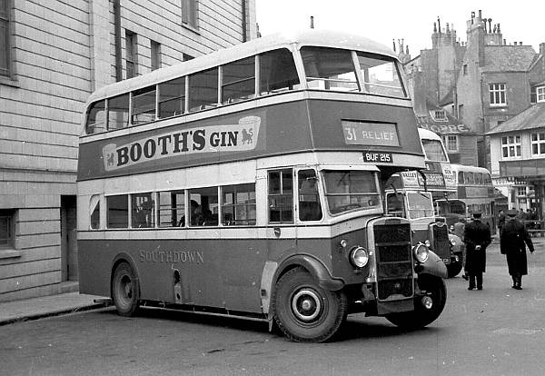 Southdown, Brighton 115, BUF215, was a Leyland TD4c, one of ten delivered in 1935 with Short H26/24R bodies.