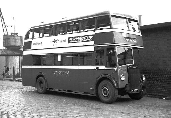 An early post-war delivery to the Western S.M.T. fleet was BCS305, a 1946 Leyland L27/26R bodied Leyland PD1 which was numbered 344 when fleet numbers were applied to the fleet in 1949.