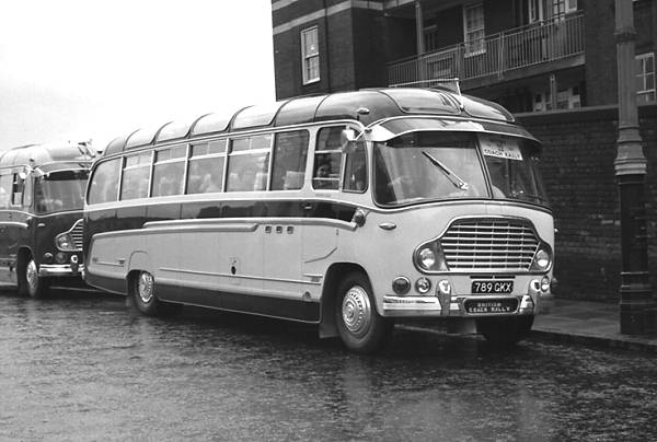 789GKX was a Bedford SB1 with a Duple C41F body of Wingrove, High Wycombe seen on Ebury Bridge awaiting the start of the the 1959 British Coach Rally.