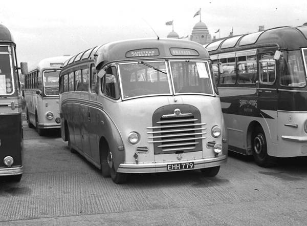 Banstead Coaches EHH779, a 1952 Duple C28F bodied Bedford SB, acquired in January 1958 is seen at Wembley Stadium.