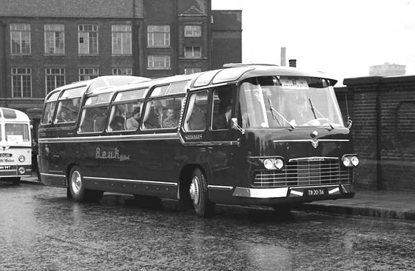 TB-20-36 was a Scania-Vabis with Roset C37D bodywork belonging to Beuk Reisbureau en Touring, Noordwijk and was seen on Ebury Bridge awaiting the start of the the 1959 British Coach Rally.