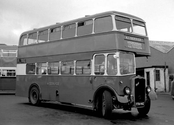 J.C. Stewart, Stevenston (A.1 Service, Ardrossan) FFM442 was a Bristol K6A which, when new in April 1946, had an Eastern Coachworks L27/28R body as Crosville, Chester MB261.