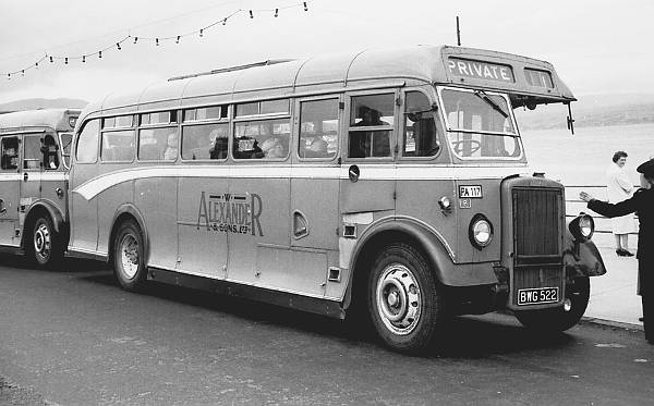 BWG522 seen in Dunoon was a Leyland PS1 with an Alexander C35F body and was one of forty-four new in 1949 to W. Alexander, Falkirk. PA117 was transferred to Alexander (Midland) in May 1961 with whom it is seen here.