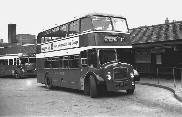 YRU57 was one of the last deliveries of Bristol LDs to Hants & Dorset, in this case an LD6G new as number 1418 in 1959. It carried an E.C.W. H33/27RD body and was seen in Winchester.