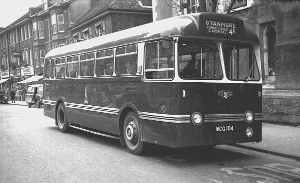 New to Chisnell (King Alfred) in 1959, WCG104 was a Leyland PSUC1/1 Tiger Cub with Weymann B44F bodywork seen in Winchester.