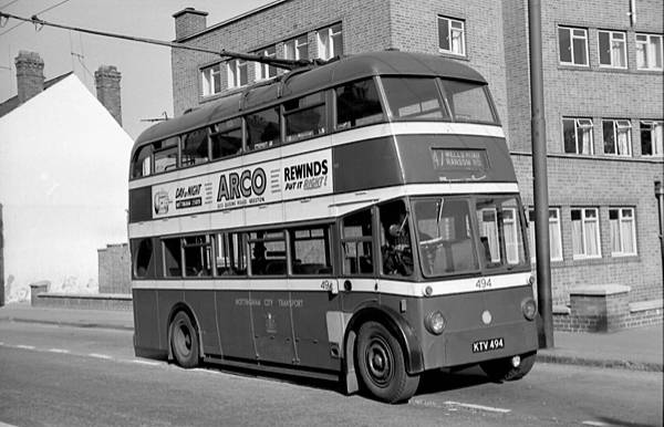 Nottingham 494, KTV494, was a B.U.T. 9611T with a Roe H31/25R body new in November 1948.