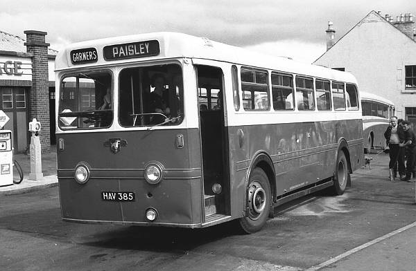 HAV385 was a Leyland PSU1/13 with a Leyland B44F body new in 1952 and was one of a pair new to Simpson, Rosehearty. It is seen here with Garner, Bridge-of-Weir.