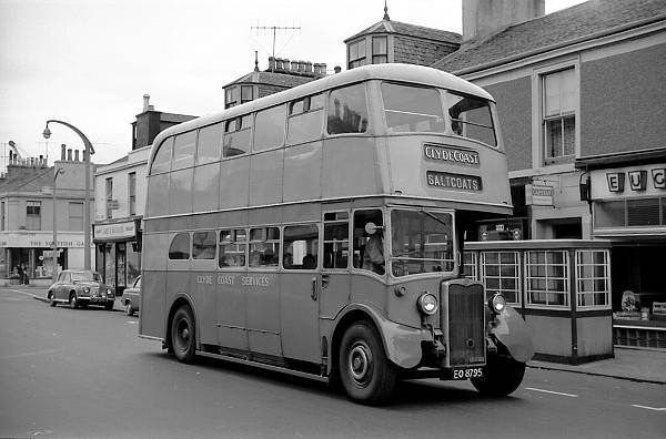 McGregor, Saltcoats (Clyde Coast), acquired EO8795 from Barrow Corporation 108 in September 1958, a Crossley DD42/4 with a Crossley H32/26R body new in November 1948.