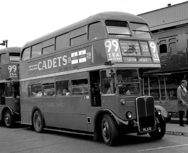 Seen at Kingston Station, preparing to operate the 213A service from there to Sutton Garage is London Transport Executive RT294, HLX111, operating from Norbiton Garage.