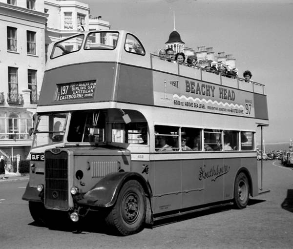 In April 1959 it was converted to PO30/26R and was withdrawn in 1964, passing to Cowley (dealer), Salford in June. It is seen here at Eastbourne Pier/Grand Parade.