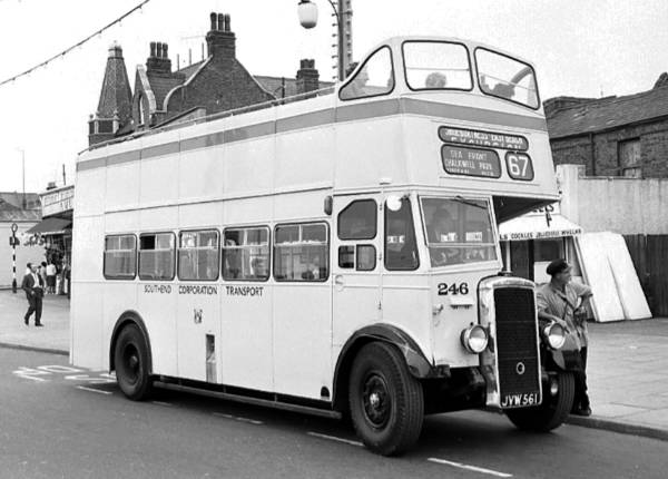 Southend Corporation 246, JVW561, a Daimler CWA6 new to Benfleet and District in 1944, bought by Southend in 1955 and converted to open top the following year.