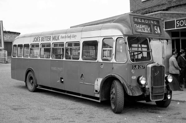 Thames Valley 629, GJB267, seen outside Reading Station, was a Bristol LWL6B with an Eastern Coachworks B39R body and had been new in April 1952.